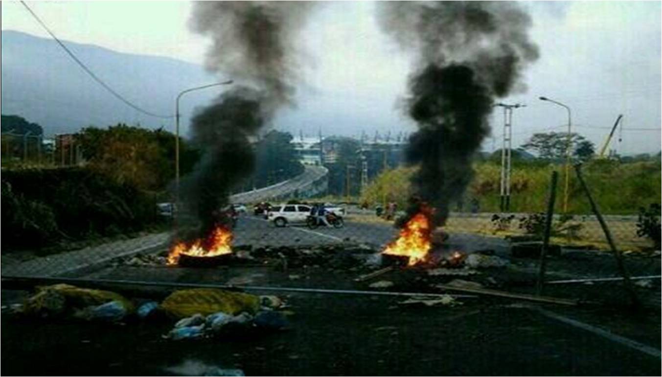 Desde las 4:30 am, aproximadamente, barricadas en varios puntos de la carretera Panamericana impiden el tránsito automotor desde Altos Mirandinos a Caracas, igual que desde la capital a la subregión.