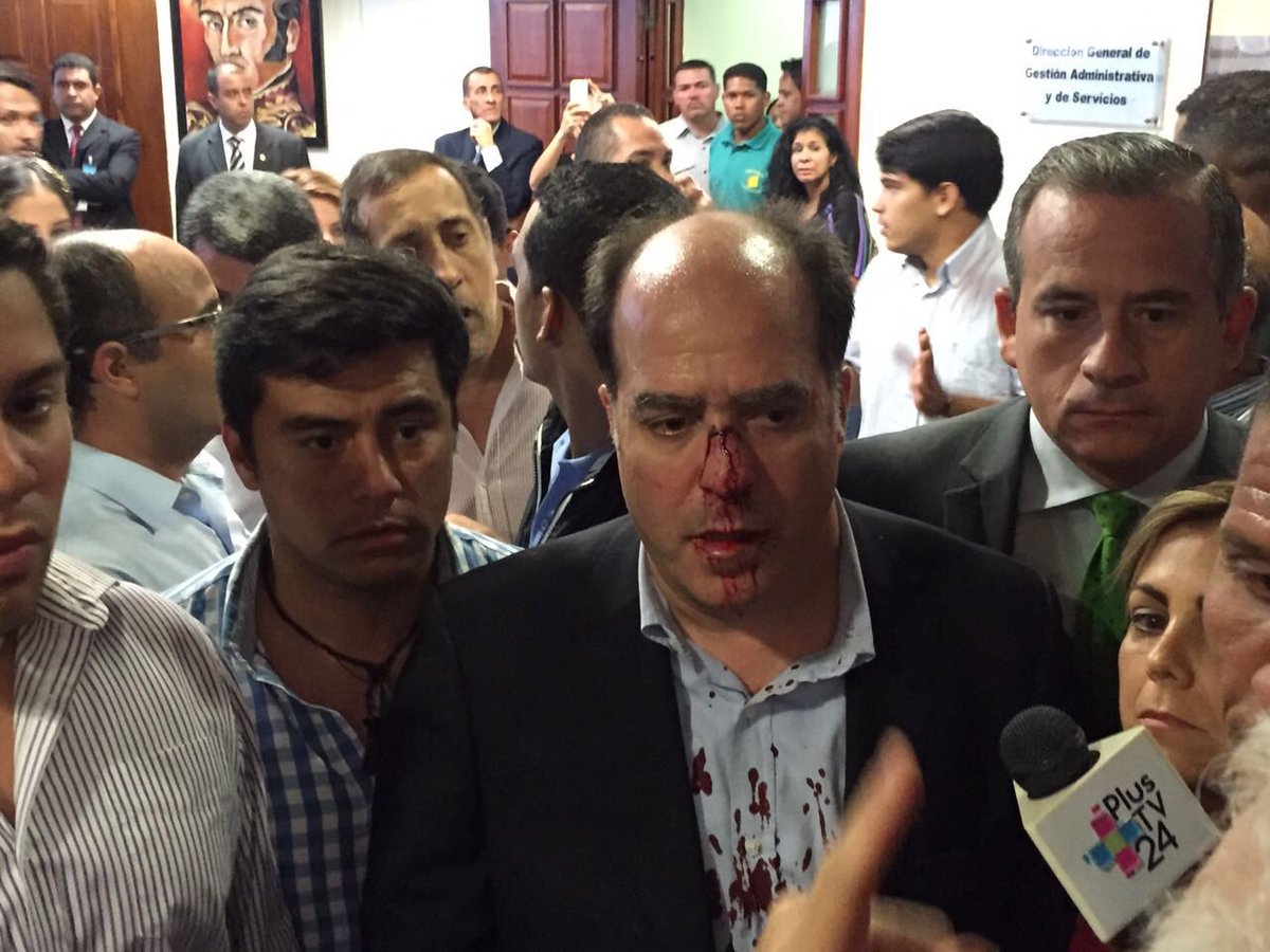 Minutos después, fueron publicadas en la red social Twitter imágenes del coordinador nacional de Primero Justicia con sangre en la cara y la nariz rota.