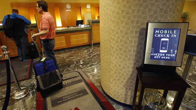 Marriott International lanzó una iniciativa para registrarse a través de su aplicación móvil en 330 hoteles de Norteamérica el año pasado. Para finales de 2014, el programa estará disponible en sus 4.000 hoteles de todo el mundo. Cuando una habitación está disponible, el cliente recibe un mensaje en su celular. Las llaves tradicionales se reprograman y le esperan en el mostrador. Una fila exprés permite a estos huéspedes evitar a las multitudes y recibir sus llaves sólo con mostrar una identificación.