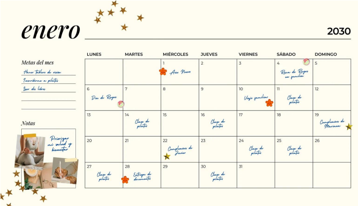 • Incorpora imágenes inspiradoras para cada mes.