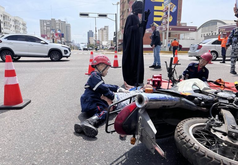 Para generar un impacto visual que invite a la reflexión profunda, la jornada incluyó un elemento simbólico impactante: la simulación de una escena de accidente con una urna y una persona supuestamente fallecida por la ausencia del casco de seguridad. Esta dramatización buscó confrontar a los ciudadanos con las consecuencias reales de la imprudencia, recordando que un simple implemento de seguridad puede ser la diferencia entre la vida y la muerte en el asfalto marabino.