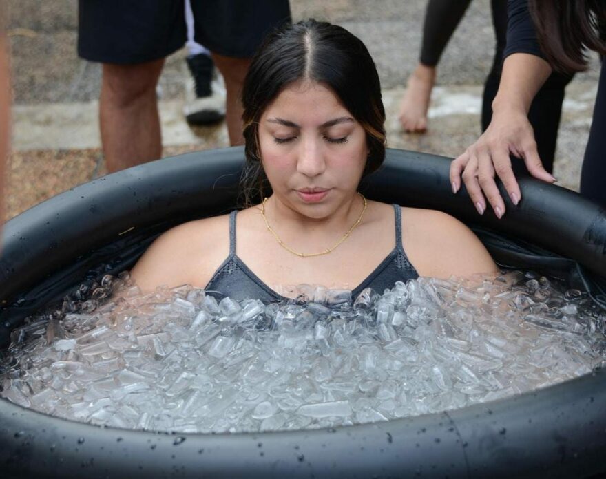 Juliette Andrade, promotora del “Movimiento respira Maracaibo”, destacó el valor terapéutico del frío. “el frío nos enseña a soltar y respirar. en la inmersión, el cuerpo se enfrenta a una respuesta de shock y la mente aprende a mantener la calma en medio de ese caos. es una terapia que nos recuerda que podemos tener control incluso en circunstancias extremas de la vida,” señaló Andrade, explicando que el objetivo va más allá del beneficio físico del hielo.