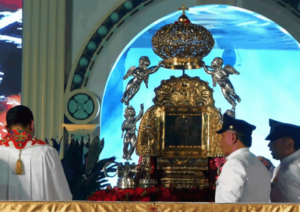 Este sábado, 25 de octubre, se llevó a cabo la solemne y tradicional «Bajada de Nuestra Señora de Chiquinquirá», conocida cariñosamente como «La Chinita», en la histórica plazoleta de la Basílica de la capital zuliana. El emotivo acto, que honra a la excelsa patrona del estado Zulia, contó con la masiva afluencia de aproximadamente 50.000 feligreses y devotos.