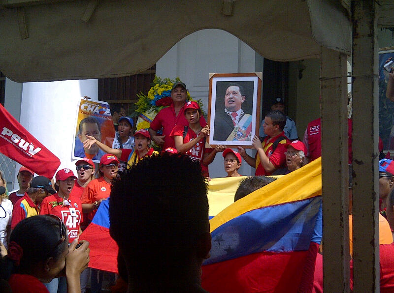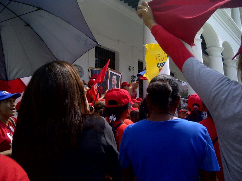 «El pueblo lo sabe y tiene razón, aquí el que manda es Chávez y la revolución», gritan los simpatizantes.
