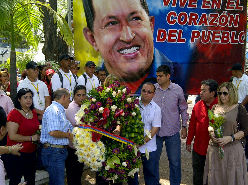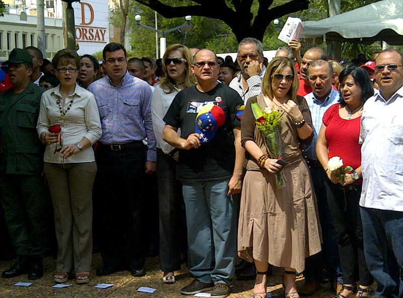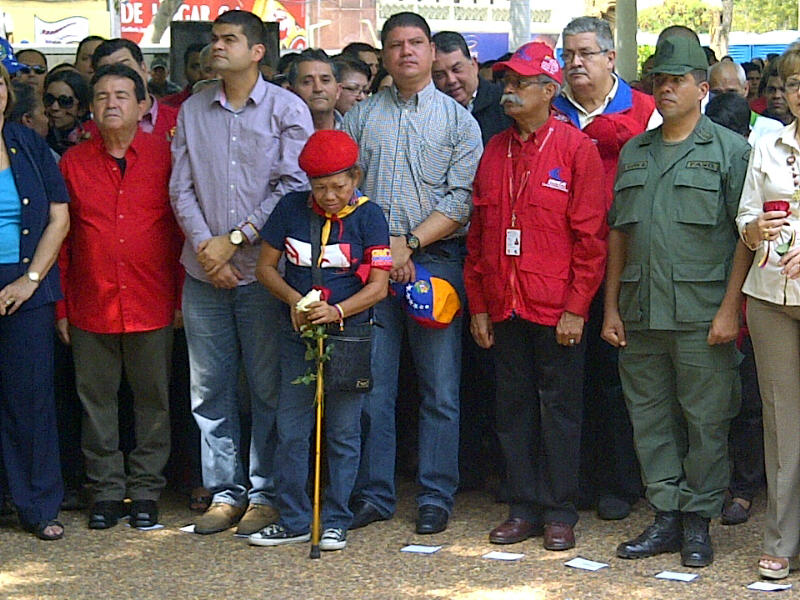 En la Plaza Bolívar de Maracaibo se está desarrollando una ofrenda floral en honor al presidente Chávez. Allí están reunidos personalidades de la región y decenas de simpatizantes del gobierno.