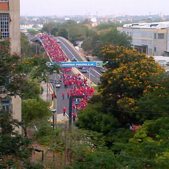 En la imagen, se aprecia como los simpatizantes del gobierno nacional rumbo a la celebración de la victoria del pasado domingo.