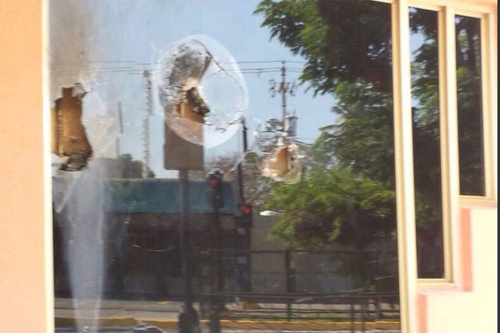 Pasada la 1:00 de la tarde se registró el ataque, que dañó parte de las ventanas de la fachada de la universidad, como se evidencia en las imágenes.
