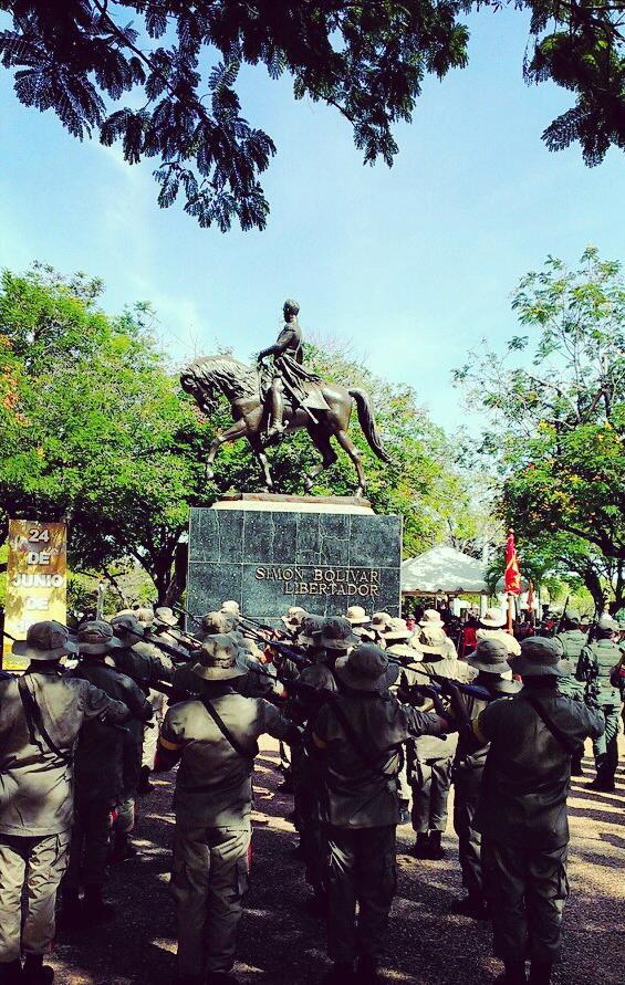 El Gobernador Francisco Arias Cárdenas ha expresado júbilo por los 192 años de la batalla de Carabobo y desde la Plaza Bolívar Bolívar tuitea esta foto de los honores al Padre de la Patria.