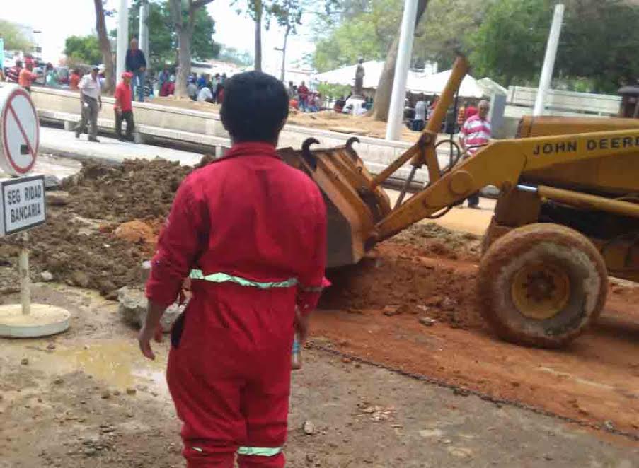 Cuadrillas de la Hidrológica del Lago de Maracaibo, repararon este domingo una fisura en tubería de agua potable de 12 pulgadas de diámetro, que afectaba el casco central de Maracaibo, específicamente en la avenida 5, frente a la sede del Banco Central de Venezuela, parroquia Bolívar.