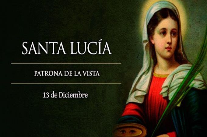 La santa se conoce como la protectora de la vista, también gracias a su mismo nombre: Lucia llega del latín Lux (luz). El culto a la santa, antes localizado en la sola Sicilia, se difundió por toda Italia y Europa, y hoy en día está muy vivo en los países del Norte, donde ella se conoce como “la que lleva la luz”.