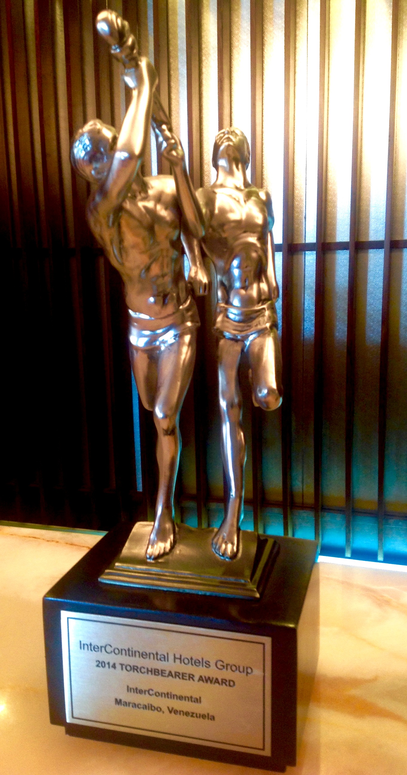 El InterContinental Maracaibo es una de las 60 propiedades seleccionadas de entre los más de 4,700 hoteles del sistema IHG por haber alcanzado los más altos niveles de excelencia en todo aspecto de la operación, partiendo de la calidad y hasta la satisfacción del cliente. Un trofeo Torchbearer 2014, el símbolo más alto de excelencia de la compañía, el cual será exhibido permanentemente en el hotel.