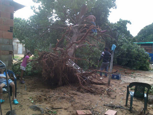 Las fuertes precipitaciones, acompañadas por vientos de gran velocidad y desplazamiento, han ocasionado la caída de varios árboles en la ciudad. Uno de los primeros en reportarse fue un inmenso árbol de níspero que cayó sobre una vivienda en el barrio Andrés Eloy Blanco de la parroquia Cecilio Acosta en Maracaibo.