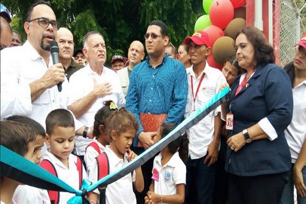 El gobernador del estado Zulia, Francisco Arias Cárdenas, en compañía del Ministro de Educación, Rodulfo Pérez reinauguraron este martes la Unidad Educativa Don Omar León Salas, ubicada en el barrio Los Pinos de la parroquia Manuel Dagnino, en Maracaibo.
