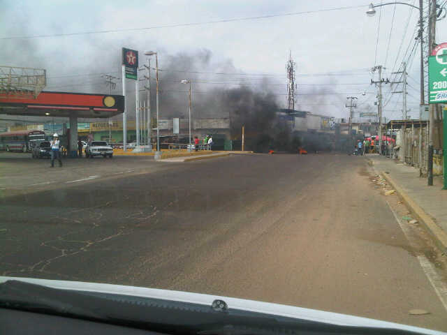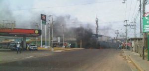 Vecinos de los sectores Cerro Pelao, Santo Domingo y zonas aledañas protestan por falta de agua en la esquina de la estación de servicio Texaco, en Haticos por arriba.