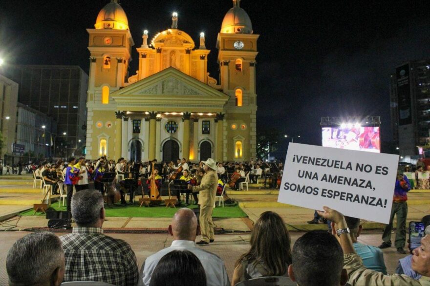 La plazoleta de la Basílica de Nuestra Señora de Chiquinquirá se convirtió en el epicentro de un encuentro cultural sin precedentes con el Concierto por la Soberanía y la Paz, organizado por la Gobernación del estado Zulia y las alcaldías bolivarianas, en respaldo al gobierno nacional ante la amenaza de una intervención militar por parte de los Estados Unidos.