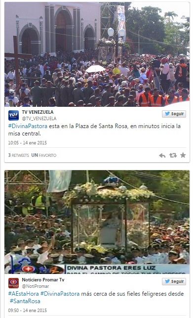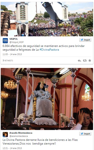 La peregrinación de la Divina Pastora, que se inicia cerca de horas del mediodía del 14 de enero y culmina a primeras horas de la noche, se cumple entre cantos, plegarias y alabanzas de la feligresía.