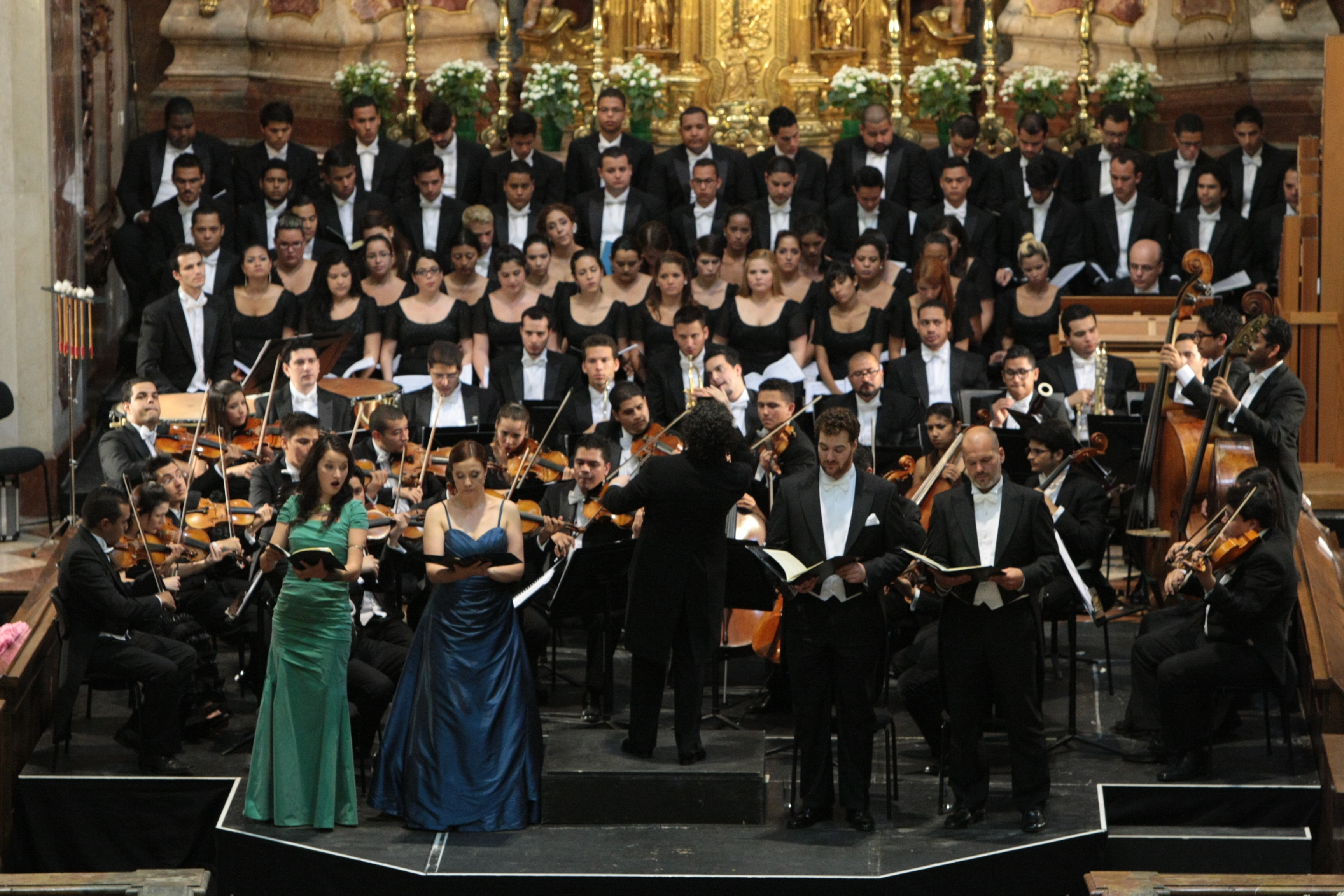 Al frente del altar, de los músicos y de los coralistas, Gustavo Dudamel marcaba la participación de cada intérprete con el diálogo silente entre sus manos y los jóvenes músicos venezolanos. El concierto permitió pausas en las que el público reveló la expectativa y la inquietud por seguir escuchándolos, además de la incesante búsqueda del momento de los aplausos. Los acompañaron las sopranos Anna Prohaska y Roberta Invernizzi, el tenor Mauro Peter y del barítono Florian Boesch.