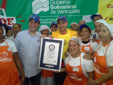 Chefs venezolanos y más de 500 madres procesadoras participaron en la elaboración de los dos platos típicos de la época decembrina venezolana de mayores dimensiones del planeta y de la bebida refrescante. La actividad se realizó en el Paseo Los Próceres, en Caracas.