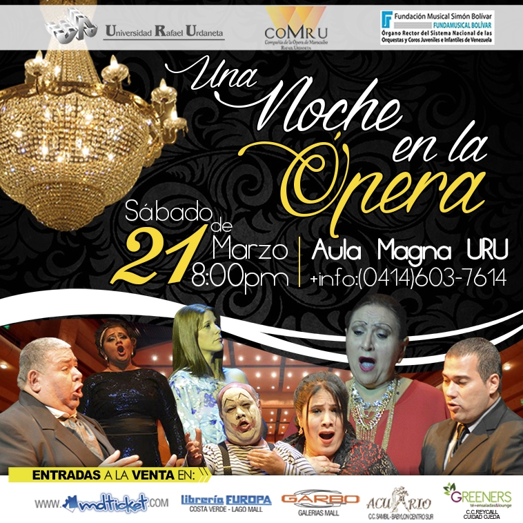 La Compañía de la Ópera de Maracaibo Rafael Urdaneta (COMRU), de la mano del Sistema Nacional de Orquestas, de la URU y su Aula Magna, del Grupo Lírico y el Coro Sinfónico, de nuestros solistas, bajo la égida musical de los Maestros Juan Bautista Sampayo y Rubén Darío Cova, ofrecerán un performance canora y musical digna de los públicos y teatros más exigentes.