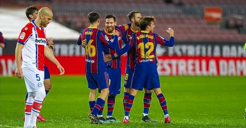 Con dobletes del portugués Francisco Trincao (29 y 74) y del argentino Lionel Messi (45+1 y 75) y otro tanto del dominicano Júnior Firpo (80) el Barcelona selló un triunfo sencillo. Mientras que Luis Jesús Rioja marcó el tanto vitoriano (57).