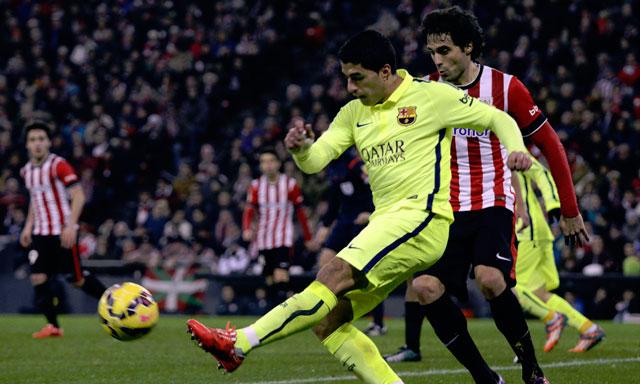 Barcelona goleó 5-2 al Athletic de Bilbao en San Mamés y quedó a tiro de la cima de la liga española. El conjunto de Luis Enrique se impuso con una gran actuación de Lionel Messi, quien marcó uno y participó en los otros 4, y así se puso a un punto del líder Real Madrid, que el sábado había sido goleado 4 a 0 por el Atlético.