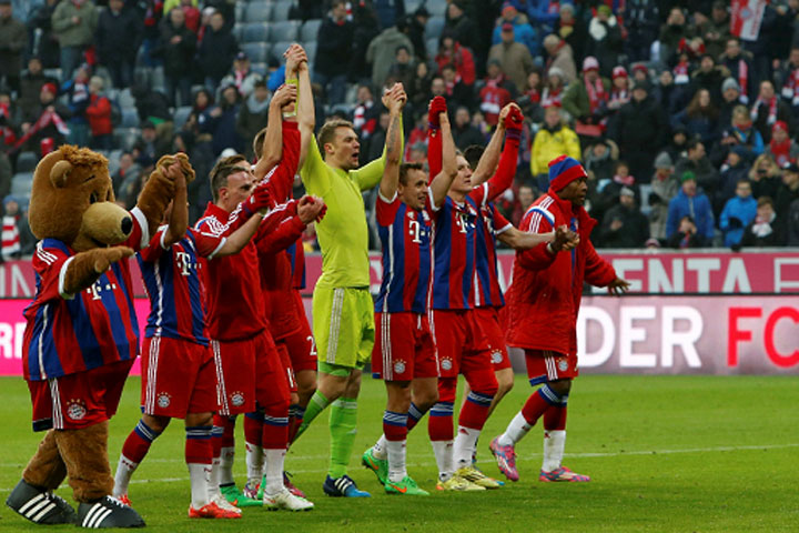 El Bayern Múnich (1º), que había comenzado 2015 con una derrota, un empate y una victoria, confirmó su recuperación al golear 8-0 al Hamburgo (12º), este sábado en la 21ª jornada, en la que el Wolfsburgo (2º) logró una sufrida victoria 5-4 en terreno del Bayer Leverkusen (6º).