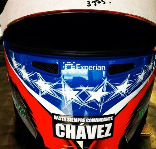 Durante la primera carrera del campeonato de 2013 de la Fórmula 1 este domingo, el piloto venezolano Pastor Maldonado utilizará un casco en el que se leerá “¡Hasta siempre, Comandante Chávez!”, en honor al líder de la Revolución Bolivariana.