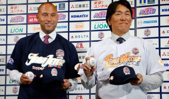 Derek Jeter y su ex compañero de equipo Hideki Matsui jugarán un partido de béisbol para obras benéficas que apoyan a los damnificados del terremoto y tsunami de 2011 en Japón, y el retirado astro de los Yanquis insinuó que algún día podría ser dueño de un equipo.