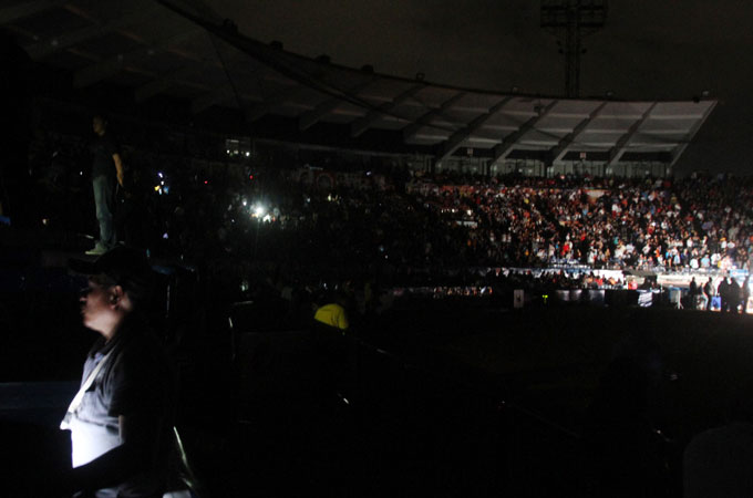 El apagón eléctrico nacional también llegó, este lunes, al estadio José Bernardo Pérez de Valencia, donde se escenificó el Derby de Jonrones, con los mejores toleteros de nuestro béisbol profesional y de Grandes Ligas.