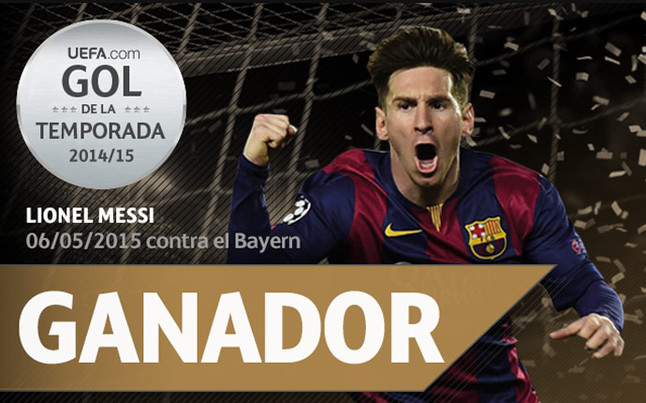 El gol que anotó Lionel Messi en el Camp Nou en la ida de las semifinales de la última Copa de Europa ante el Bayern alemán ha sido elegido como el mejor de la temporada en Europa para los usuarios de UEFA.com.