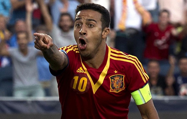 Thiago Alcántara firmó un partido redondo con hat trick incluido, el primero en la final de un Europeo sub 21. El capitán español anotó el primero de cabeza a pase de Morata, el segundo con la izquierda tras asistencia de Koke y el tercero de penalti.