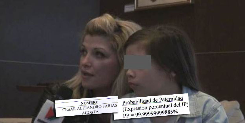 Ella ha presentado pruebas de ADN practicadas en abril de este mismo año. Y los estudios médicos expuestos en tales exámenes hablarían de un nexo sanguíneo entre Farías y la niña Nadin Camila.