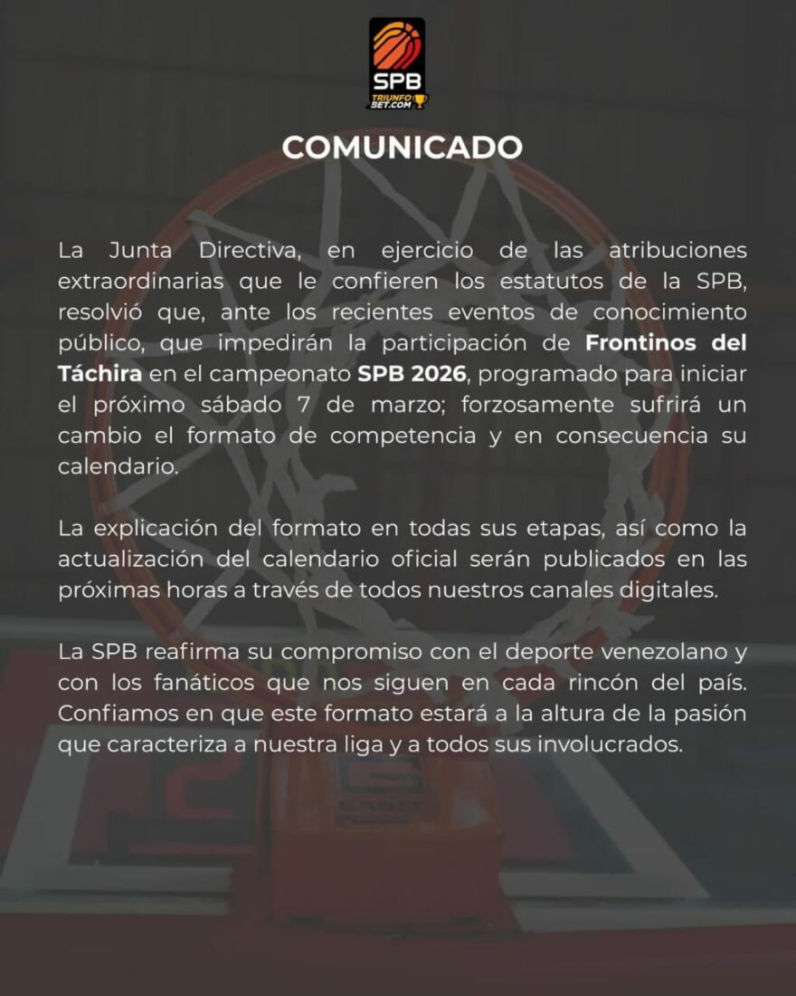 La Superliga Profesional de Baloncesto ha sorprendido a la comunidad deportiva venezolana al anunciar un cambio drástico en su estructura para la campaña que está por iniciar. A través de sus canales oficiales, la organización confirmó que el equipo Frontinos del Táchira no formará parte de la zafra correspondiente al año 2026. Esta decisión se produce a escasos días de que se realice el salto entre dos, dejando un vacío importante en la representación de la región andina y alterando la planificación de los demás clubes del circuito rentado nacional.