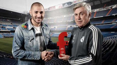 El delantero del Real Madrid, Karim Benzema, recibió el galardón de mejor jugador francés del año 2014.