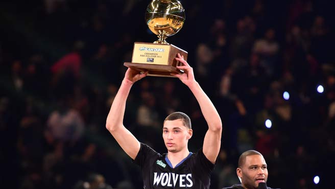 En el concurso de clavadas, LaVine, el novato de 19 años de los Timberwolves de Minnesota, se llevó una calificación perfecta de 100 en la ronda inicial en la que destacó una clavada reversible a una mano en su primer intento. Tuvo una ronda final de 94 puntos para superar a Victor Oladipo, del Magic, quien batalló para clavar el balón en su primer intento y terminó con una calificación de 72 en la ronda por el campeonato.