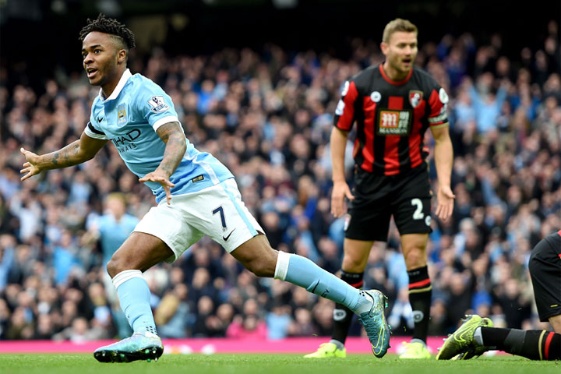 El Manchester City mantuvo el liderato de la Premier League al ganar este sábado en la novena jornada al Bournemouth (17º) por 5-1 con un triplete del internacional inglés Raheem Sterling, mientras que el Manchester United (2º) venció 3-0 al Everton (9º).