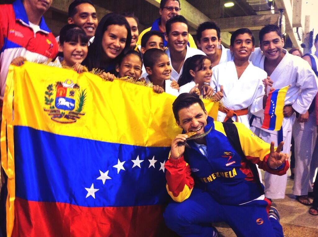 El Karateka Venezolano Antonio Díaz, llegó a tierras venezolanas luego de conseguir medalla de oro en el campeonato Mundial en Kata en los IX Juegos Mundiales Cali 2013 .