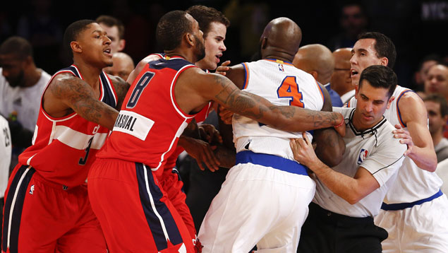 En uno de los partidos de la jornada navideña de la NBA, entre los Knicks de Nueva York y los Wizards de Washington, un jugador fue expulsado luego de intentar pegarle un golpe a un contrario.