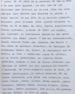 Aunque el anuncio lo hizo en una rueda de prensa previa al encuentro a disputarse en el José Bernardo Pérez entre Cardenales de Lara y Navegantes, la carta con sus motivos generó amplia reacción en la red social Twitter donde su nombre se ubicó en lo más alto de trending toping.