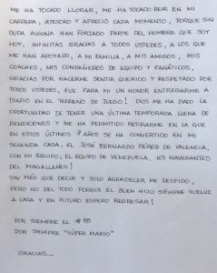«Y luego de 15 años es momento de dar un paso a un lado como jugador». Así comienza la carta manuscrita que posteó este domingo Mario Lisson, el jugador de los Navegantes del Magallanes, al anunciar su partida.