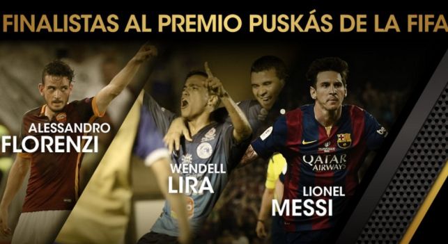 De los miles de tantos convertidos entre el 27 de septiembre de 2014 y el 23 de septiembre de 2015, Alessandro Florenzi, Wendell Lira y Lionel Messi son los protagonistas de estos tres goles finalistas, uno de los cuales será el ganador del Premio Puskás de la FIFA.