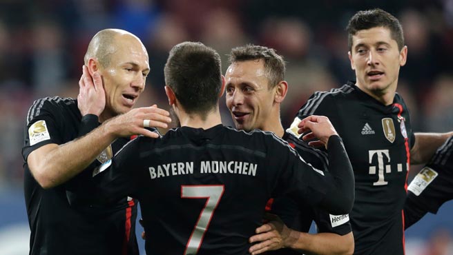 Después, con más espacios para combinar, el Bayern no tuvo piedad, en el 59 Robben hizo el tercero un remate desde fuera del área, en el 68 Robert Lewandowski marcó el tercero y en el 71 otra vez Robben, con su típica jugada de recorte hacia adentro y remate de zurda, elevó la cuenta para sellas el marcador definitivo. +