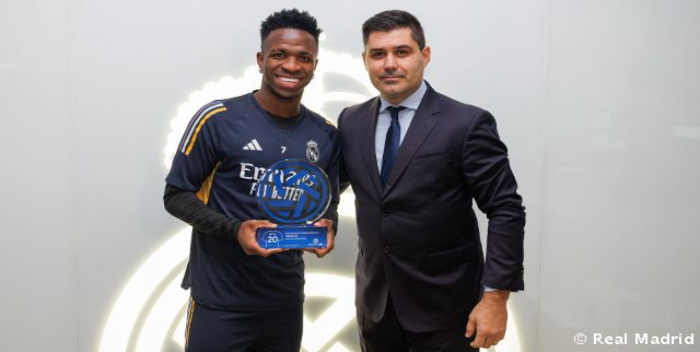 El brasileño Vinícius Junior fue reconocido por la Asociación de Futbolistas Españoles (AFE) como el mejor jugador de LaLiga 2022-23 y, tras recoger el galardón de manos del presidente del sindicato, David Aganzo, dijo que confía en mantener el mismo nivel «muchos años» en el Real Madrid.