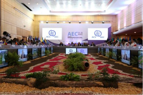 Canciller @jaarreaza: Nuestro pensar por el futuro y desarrollo de los pueblos es principio de cooperación fundamental de la Asociación de Estados del Caribe. #AEC #ACS pic.twitter.com/KlFGbbQeSs