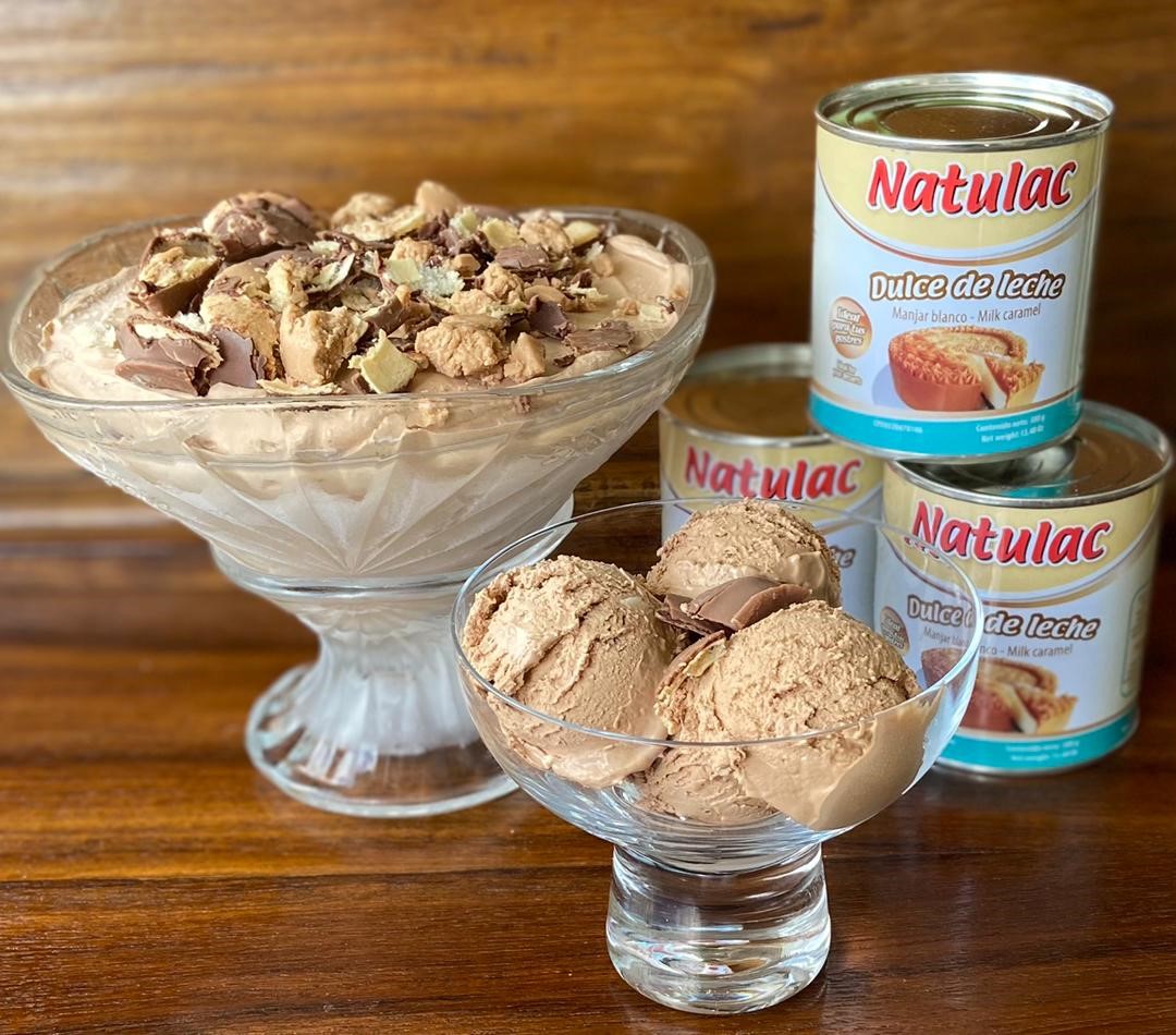La repostera María Gentil, de origen brasileño y conocida en Caracas por sus famosos “brigadeiros” y embajadora de Natulac, ha incorporado el dulce de leche en una nueva receta de helado casero, pensando en la creación de un nuevo postre para su catálogo.