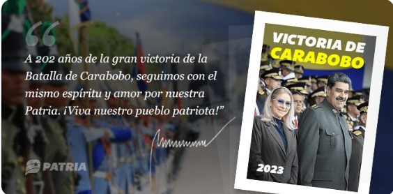 «A 202 años de la gran victoria de la Batalla de Carabobo, seguimos con el mismo espíritu y amor por nuestra Patria. ¡Viva nuestro pueblo patriota!», dice el mensaje con el que anunciaron el bono.