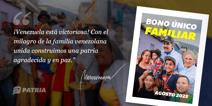 Se recuerda a los ciudadanos que el Bono Único Familiar se asigna de forma automática y aleatoria a los usuarios registrados en el Sistema Patria.
