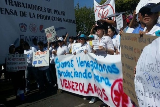 Gritando consignas: «Sin materia prima no podemos laborar», «Queremos trabajar» y «No al cierre de Polar», los trabajadores aseguraron que la falta de insumos pone en peligro más de 2.000 puestos laborales.