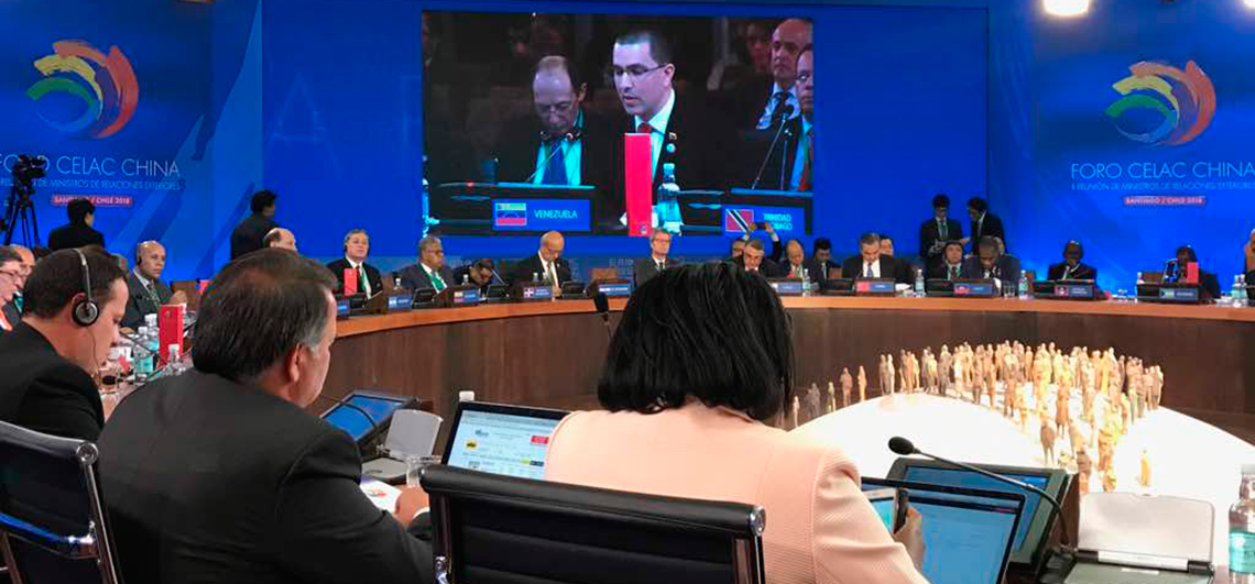 Durante el II foro de cooperación Celac-China que se realiza en Chile, el canciller de Venezuela Jorge Arreaza, destacó que en conjunto con China se acordó un plan de acción para avanzar y fortalecer las alianzas estratégicas integral que existen con la nación asiática.