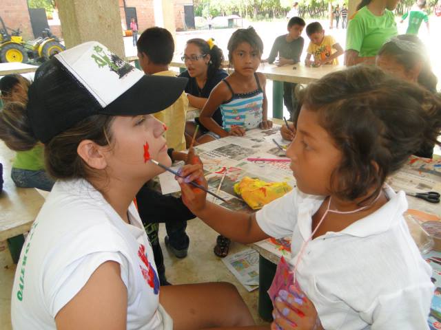 El trabajo con la comunidad también fue una experiencia indescriptible que movió mucho a los jóvenes participantes. Quienes prepararon un plan vacacional llamado “Hermanitos de María” donde harían actividades lúdicas, formativas y manualidades con los niños de la comunidad, con edades comprendidas desde los 3 años hasta los 17 años de edad. Sorpresa para todos fue que el plan vacacional estaba diseñado en principio para unos 30 niños de las zonas más cercanas al colegio, basándonos en experiencias anteriores;Pero fue una gran alegría para nosotros el encontrarnos con más de 56 niños el primer día de trabajo con la comunidad y con cada día que pasaba el número crecía y crecía hasta el punto en que terminamos trabajando con un total de 81 niños de todas las edades, tomando en cuenta que algunos de ellos debían caminar hasta 50 minutos para llegar al Colegio y compartir con nosotros un par de horas.